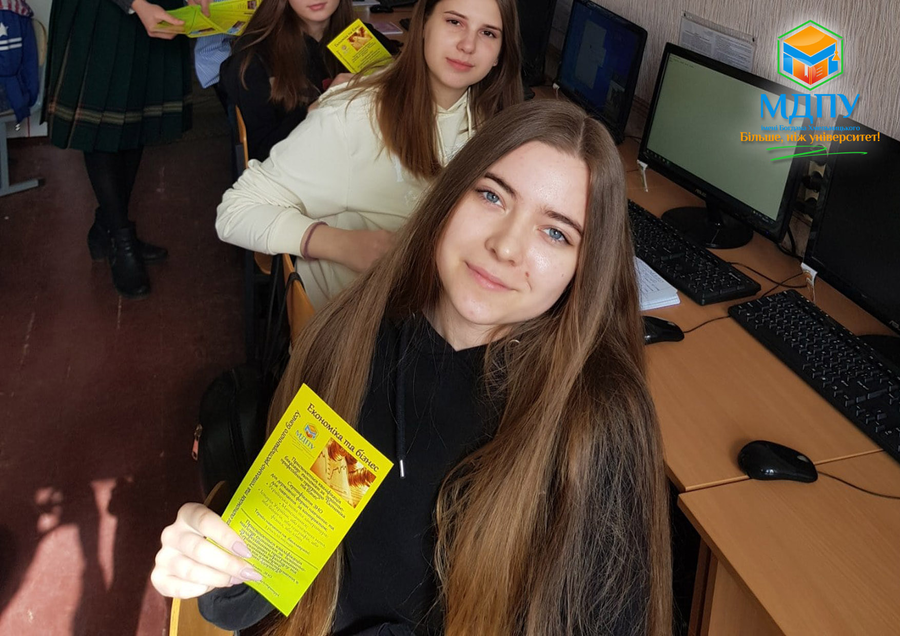 Під час зустрічі з учнями шкіл доцент Верховод І.С. надала необхідну інформацію про особливості вступу та навчання в університеті. Також Ірина Сергіївна ознайомила гостей заходу з освітніми програмами кафедри «Економіка та бізнес», «Готельно-ресторанне господарство та туристичний бізнес», які передбачають підготовку кваліфікованих фахівців (бакалаврів), здатних розв’язувати складні спеціалізовані завдання та практичні проблеми, пов’язані з професійною діяльністю на підприємствах за видами діяльності, в закладах готельно-ресторанного та туристичного бізнесу. Фахівці готуються для організаційно-управлінської, господарської, комерційної та науково-дослідної діяльності у всіх сферах економіки. Всі присутні отримали інформаційні рекламні матеріали за освітніми програмами кафедри.