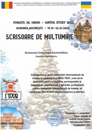 З 18 по 22 січня 2022 року в м.Бухарест (Румунія) проходив Міжнародний багатожанровий конкурс «WINTER STORY 2022».