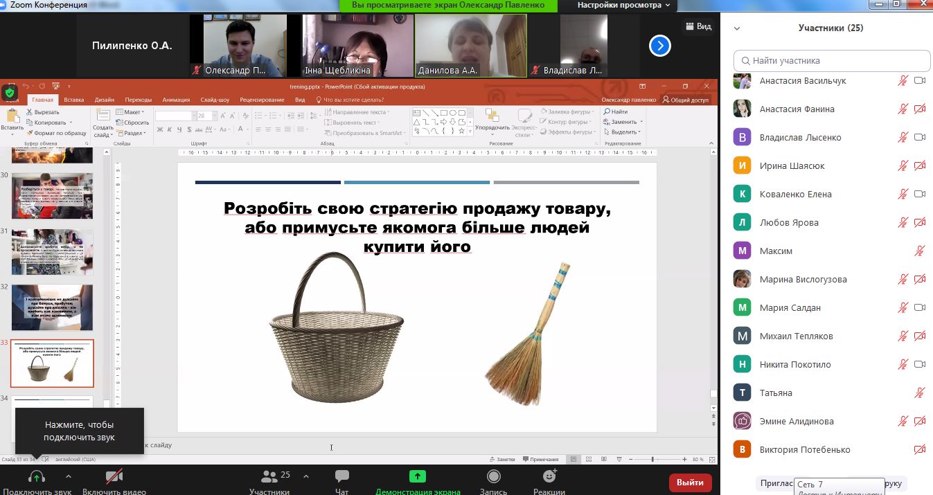 Участь у тренінгу охоче взяли не тільки студенти спеціальностей 073 Менеджмент та 075 Маркетинг, а і всі бажаючі, кого цікавлять питання менеджменту та організації підприємницької діяльності: стейкхолдери Заменягре Олена Михайлівна (директор ЗОШ №8) і Топалов Микола Андрійович (менеджер з персоналу ТОВ «Агро-Сервіс»)