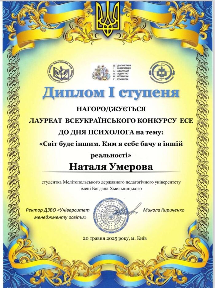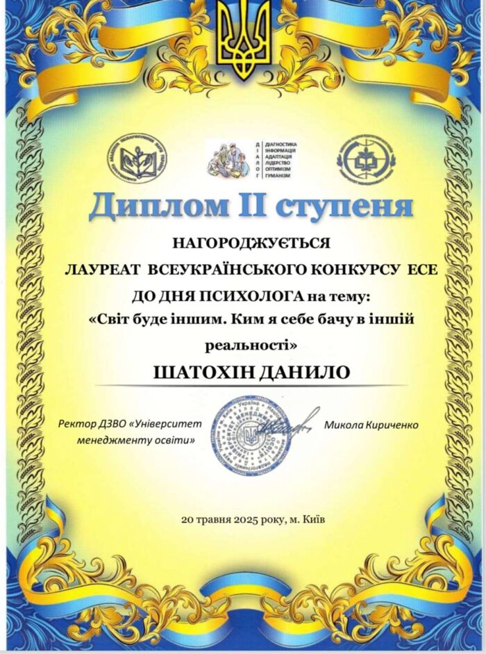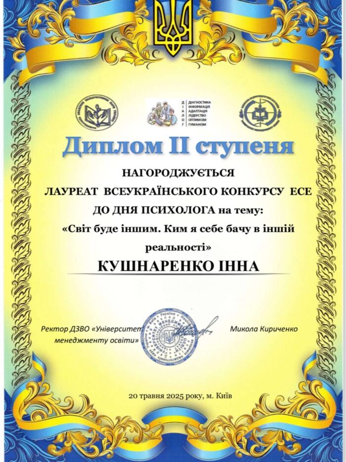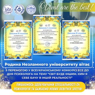 🎓🏆 Здобувачі спеціальності С4 «Психологія» вкотре підтвердили високий рівень знань, креативності та аналітичного мислення, виборовши призові місця у Всеукраїнському конкурсі, присвяченому професійному святу психологів.
