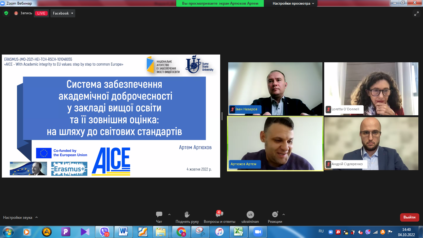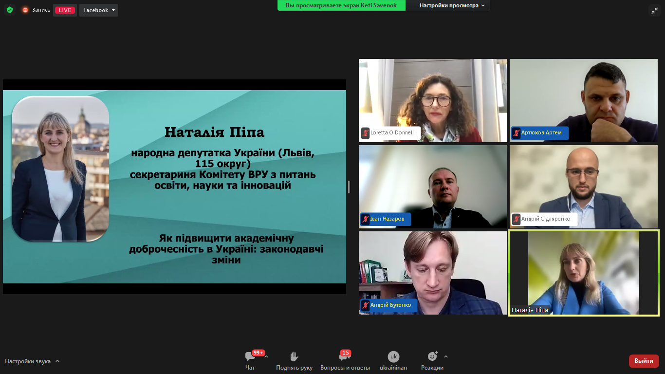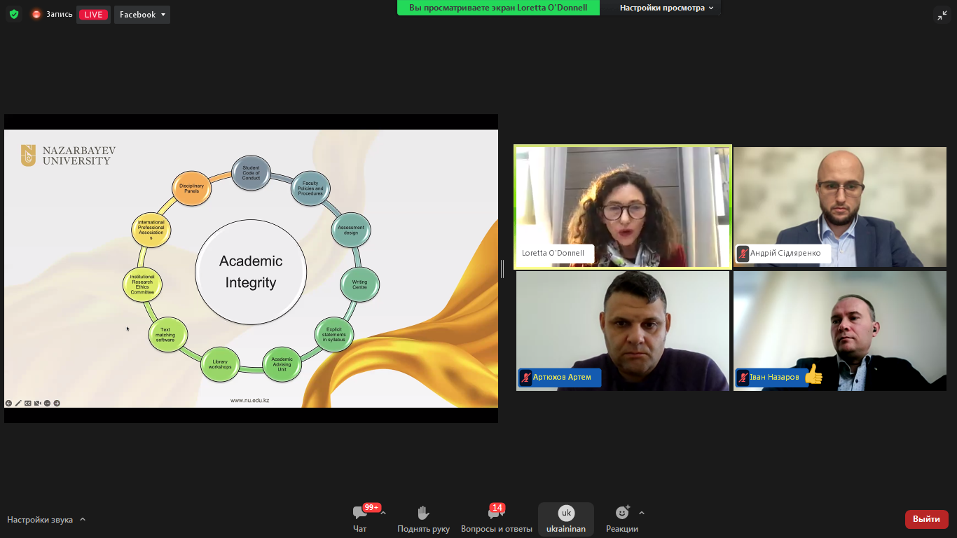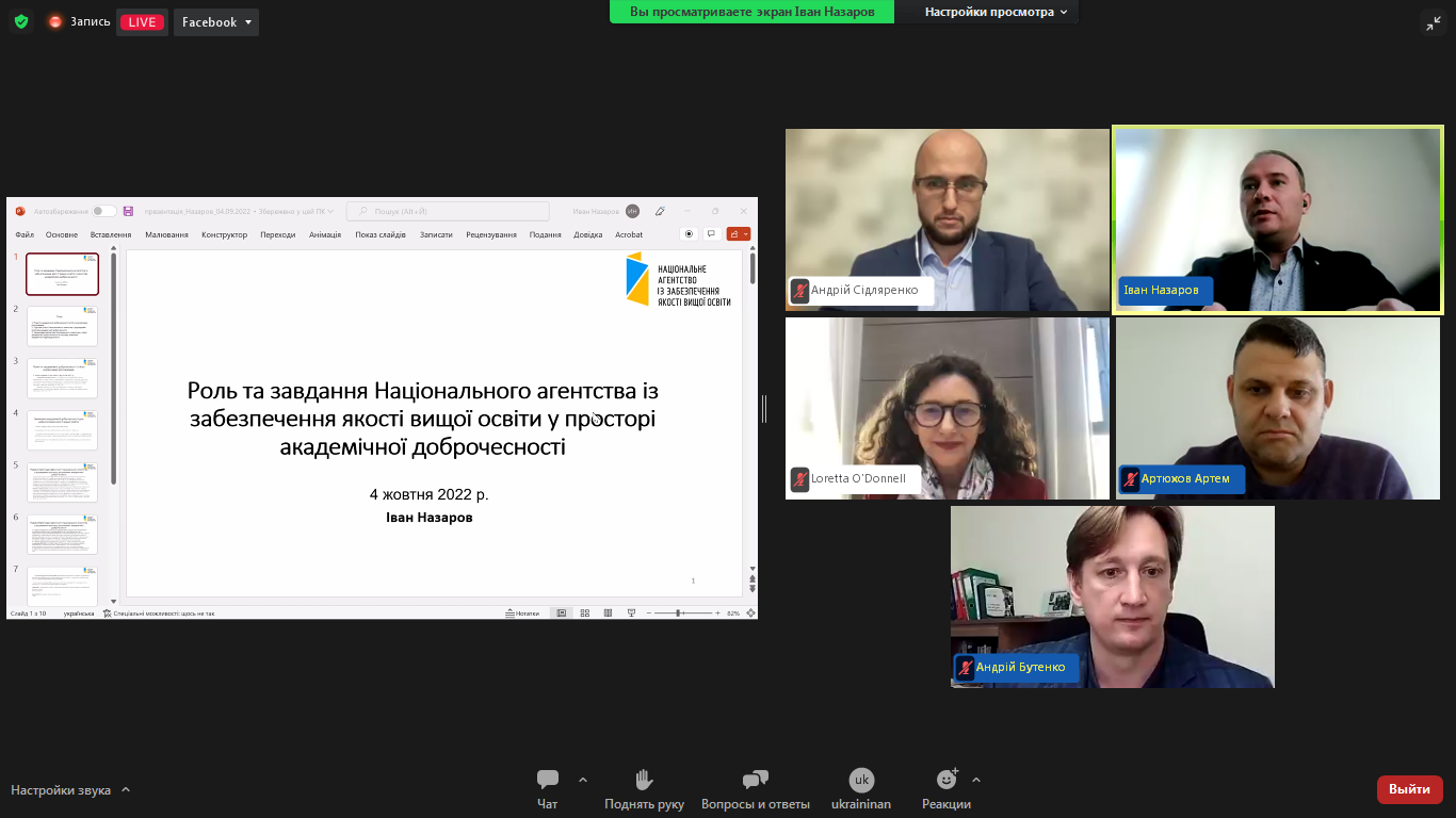 Доповідачі поділилися досвідом та напрацюваннями у забезпеченні сталого розвитку академічної доброчесності в Україні, корисними кейсами для ефективного дотримання академічної доброчесності під час кризових ситуацій.