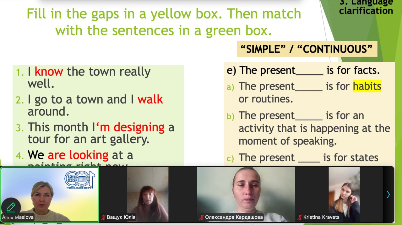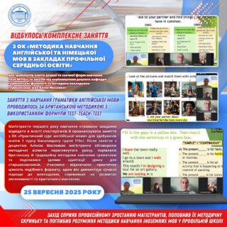 🇬🇧 Заняття з навчання граматики англійської мови проводилось за британською методикою з використанням формули Test-Teach-Test. Це підхід до структурування уроку, який складається з трьох стадій: спочатку ті, хто навчається, виконують завдання (Test), щоб показати свої наявні знання та можливі прогалини; потім викладач проводить навчання (Teach), фокусуючись на виявлених недоліках; і нарешті, здобувачі виконують ще одне завдання (Test), щоб продемонструвати успішність засвоєння нового матеріалу.