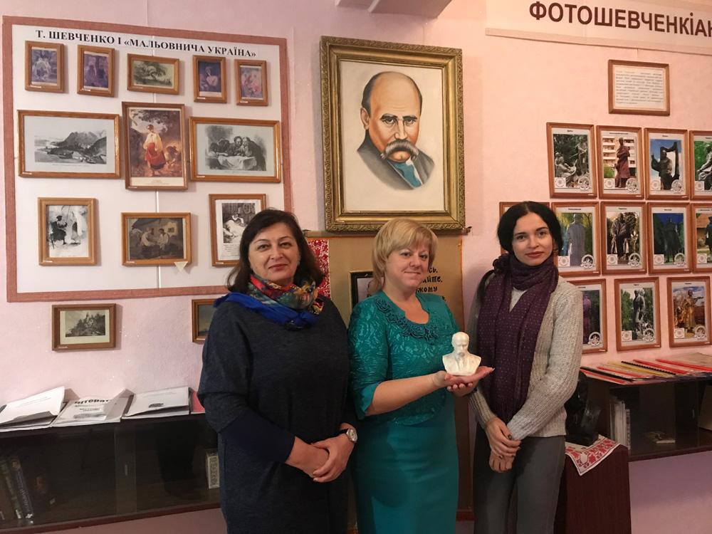 У якості подарунка від колективу кафедри української і зарубіжної літератури директор Малої академії наук Прокопенко О.М. отримала корисні матеріали для архіву музею: книги та електронні засоби навчального призначення за творчістю Тараса Шевченка, які сьогодні активно використовуються в освітньому процесі вищої школи.