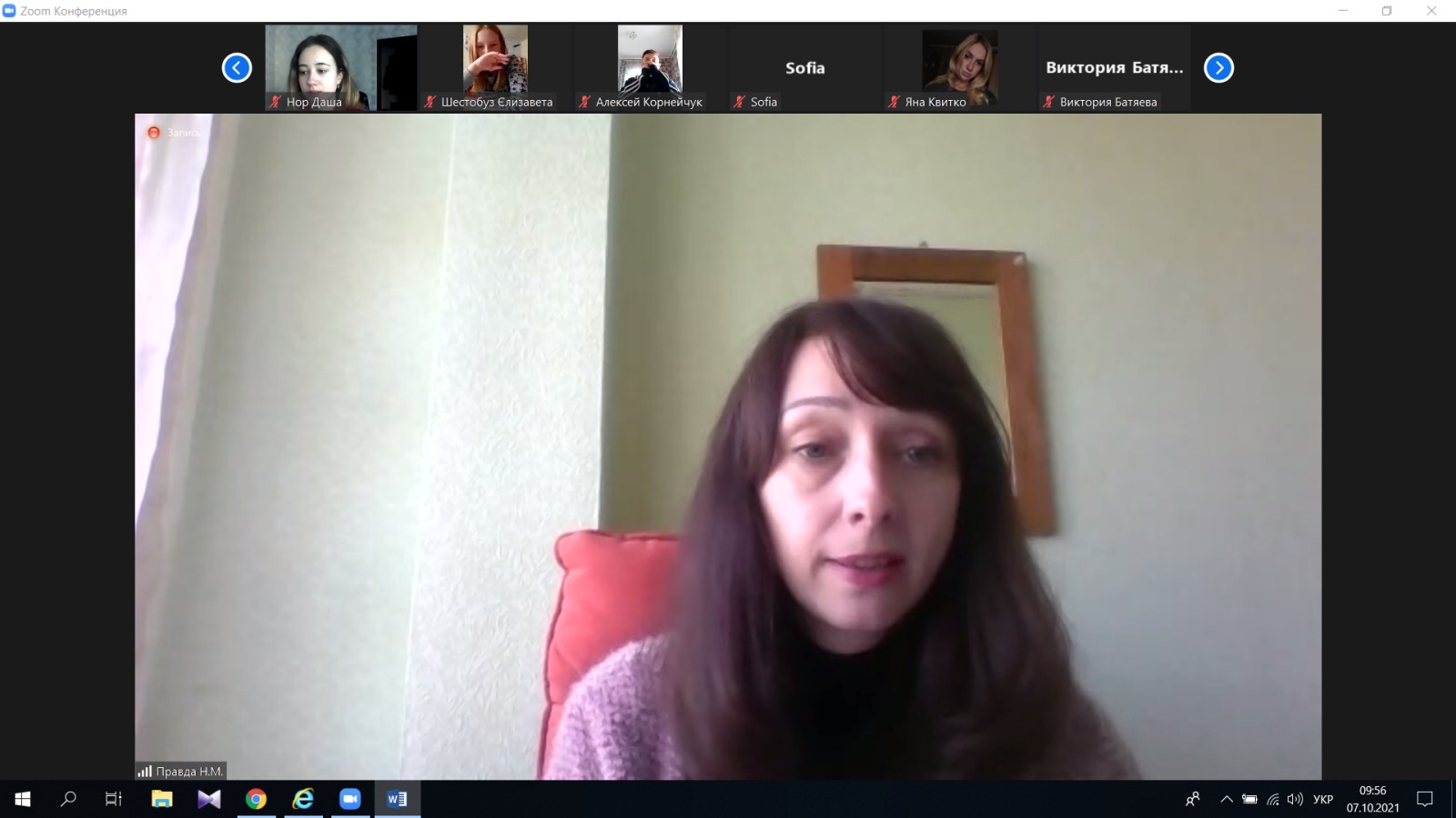 Сьогодні (07.10.2021 р.) доцент кафедри української мови І. М. Гапєєва провела лекцію з предмету «Вступ до фаху» для здобувачів освіти першого року навчання за освітньо-професійною програмою Середня освіта. Українська мова і література. Англійська мова і література із залученням зовнішнього стейкхолдера – заступниці директора з навчально-виховної роботи, кандидата філологічних наук, вчителя вищої кваліфікаційної категорії, учителя-методиста, вчителя української мови та літератури Балабинського НВК «Престиж» м. Запоріжжя Наталії Миколаївни Правди.