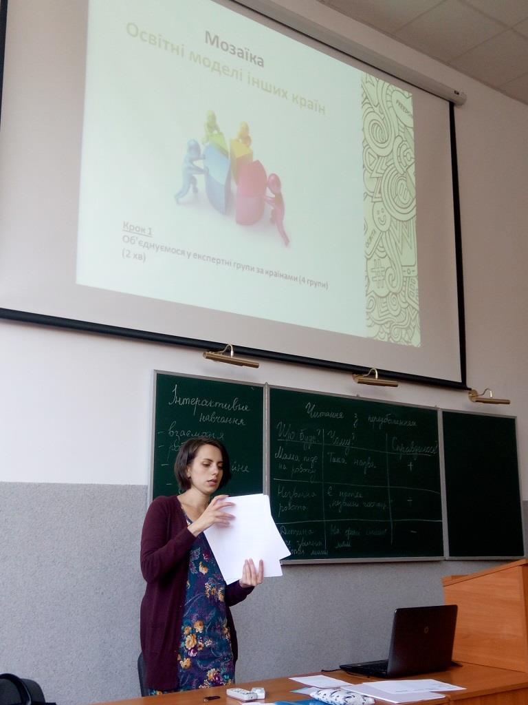 Аспірантка ПНУ ім. В. Стефаника, тренер НУШ Дибовська О.В. провела майстер-клас з інтерактивних форм роботи з текстом. Студенти й викладачі обох університетів, учителі та учні шкіл спробували себе в читанні з передбаченням, побували представниками різних країн, захищали творчі проекти зі створення каліграм за художнім текстом тощо. Дружня творча атмосфера згуртувала всіх присутніх, дозволила швидко опановувати художні тексти та формувати фахові компетентності майбутнього вчителя.