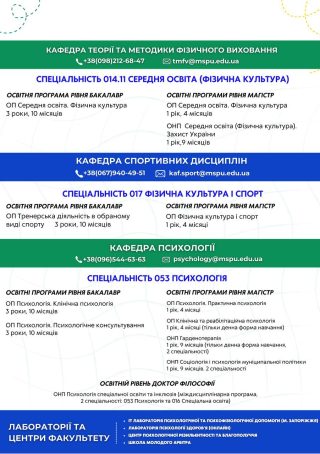 🏅📘 Факультет фізичної культури, спорту та психології — це місце, де поєднуються здоровий спосіб життя, спортивні досягнення та наука про людський потенціал. Обирай шлях, який надихатиме тебе кожного дня!