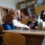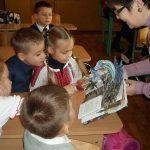 Приємною несподіванкою стало те, що цього разу на викладачів нашого університету очікували, окрім Світлани Миколаївни і учнів 2-А класу, також батьки другокласників — це мами, які, коли дізналися про незвичну книгу і неординарний майстер-клас, вирішили скласти компанію своїм дітям. Мами та їх діти послухали разом про пригоди Івана Богатиря і з цікавістю роздивилися об’ємні ілюстрації. А поглянути було на що — красиве старовинне місто, страхітливий багатоголовий Змій, красуня Принцеса і багато інших краєвидів і героїв, народжених фантазією і зроблених руками Олександра Брянцева і Анни Чемерис. Після перегляду такої непересічної книги, зрозуміло, що і учні і їх мами з ентузіазмом поставилися до пропозиції зробити об’ємну листівку з героями книги.