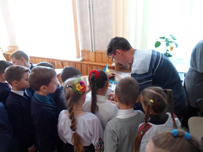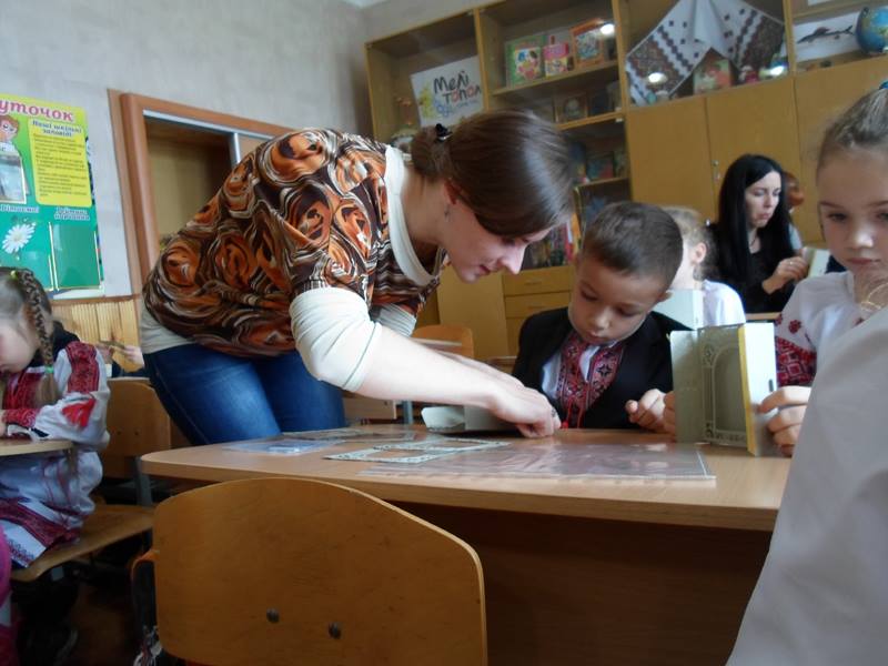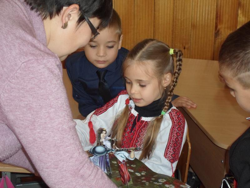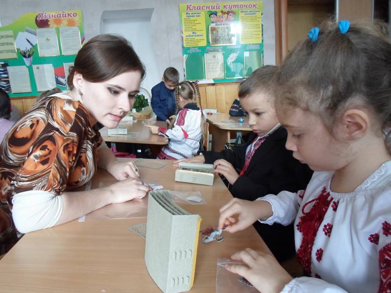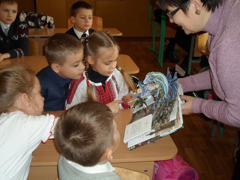 Приємною несподіванкою стало те, що цього разу на викладачів нашого університету очікували, окрім Світлани Миколаївни і учнів 2-А класу, також батьки другокласників — це мами, які, коли дізналися про незвичну книгу і неординарний майстер-клас, вирішили скласти компанію своїм дітям. Мами та їх діти послухали разом про пригоди Івана Богатиря і з цікавістю роздивилися об’ємні ілюстрації. А поглянути було на що — красиве старовинне місто, страхітливий багатоголовий Змій, красуня Принцеса і багато інших краєвидів і героїв, народжених фантазією і зроблених руками Олександра Брянцева і Анни Чемерис. Після перегляду такої непересічної книги, зрозуміло, що і учні і їх мами з ентузіазмом поставилися до пропозиції зробити об’ємну листівку з героями книги.