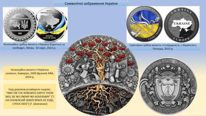 💙💛 Окремий блок майстер-класу був присвячений відображенню незламності України. Учасники розглянули приклади монет, що висвітлюють сучасні події, героїзм українського народу та боротьбу за незалежність, які знаходять відображення у світовому нумізматичному просторі.