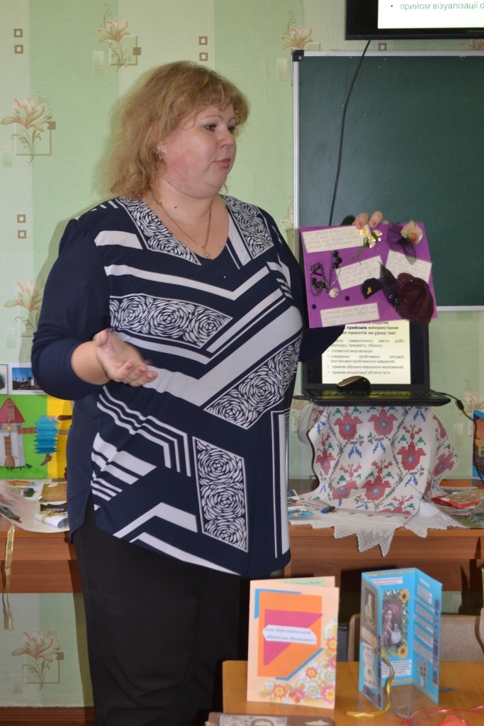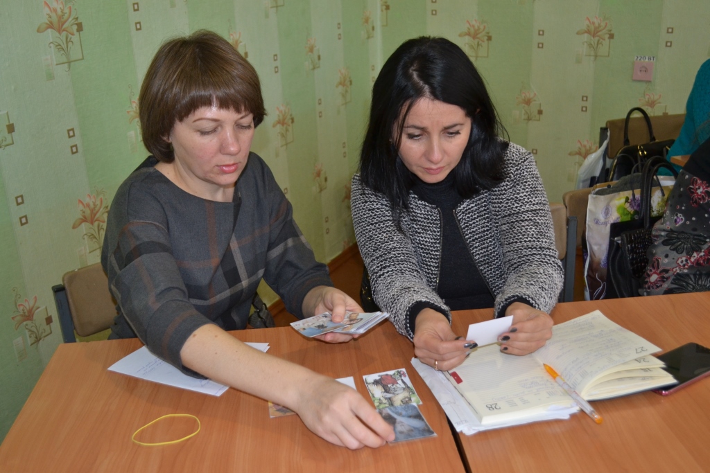 Запрошений тренер, учитель української мови і літератури ЗОШ №22 Лук’янова М.В., провела майстер-клас на тему «МАКова технологія на уроках літератури». Вона розповіла про різні засоби візуалізації навчального матеріалу, які використовуються на уроках української літератури як елемент арт-педагогіки, ознайомила із основними принципами такого підходу у навчанні, презентувала розроблені власноруч колоди метафоричних асоціативних карт (МАК), які використовує на заняттях для аналізу художніх текстів на рівні композиції, образної системи тощо. Присутнім було запропоновано виконувати різні навчальні завдання за програмними текстами української літератури за допомогою цих карт.