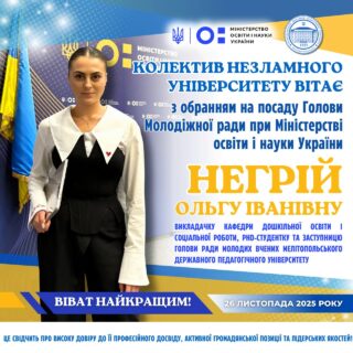 👩🏼🎓💬Рішенням більшості голосів Головою Молодіжної ради було обрано Ольгу Іванівну Негрій — викладачку кафедри дошкільної освіти і соціальної роботи, PhD-студентку та заступницю голови Ради молодих вчених Мелітопольського державного педагогічного університету.