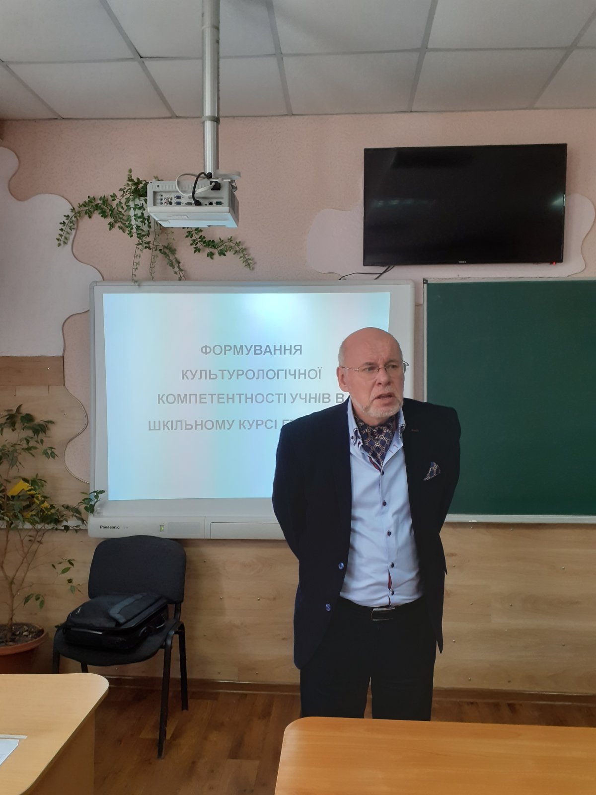 В ході доповіді О.З.Байтеряков поділився досвідом і власною методикою застосування творів живопису в географічній освіті для формування ключових компетентностей учнів. Також було проведено тренінг з комплексного географічного аналізу творів живопису на прикладі картин українських художників М.Сергіїва «Яблуні в цвіту», К.Крижицького «Вечір в Україні», А.Куїнджі «Нива». На прикладі застосування мистецьких творів вчителі ознайомились з методичними аспектами формування в учнів картографічної культури шляхом виконання відповідних завдань.