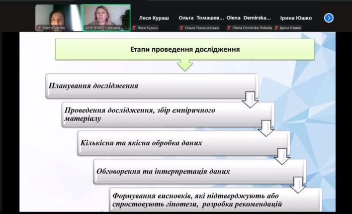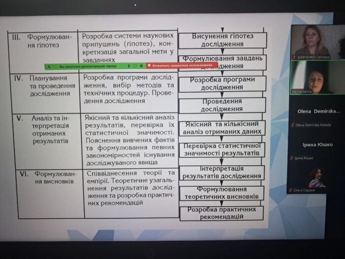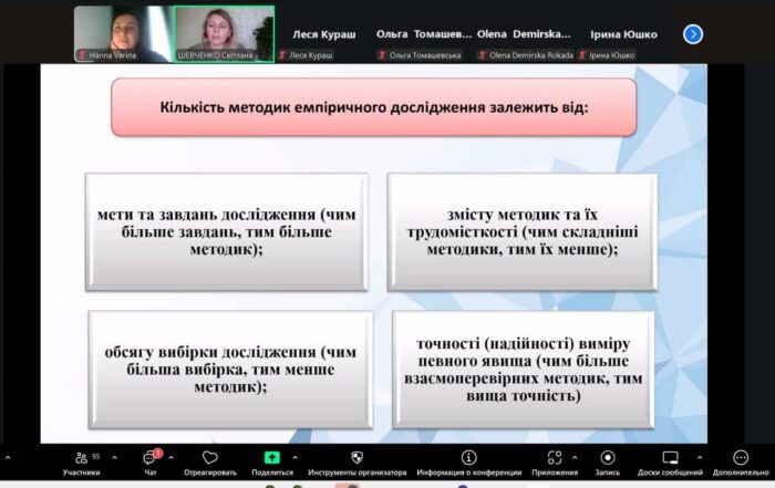 📌звернули увагу здобувачів на основні етапи проведення емпіричного етапу, його типові завдання, вимоги до підбору методів та методик експерименту;