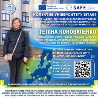 🇪🇺🔬 Грант надано в межах престижної європейської програми SAFE – Supporting At-risk Researchers with Fellowships in Europe, яка фінансується Європейським Союзом та реалізується консорціумом провідних міжнародних організацій: DAAD (координатор), Campus France, PAUSE (Collège de France) та UNIMED.