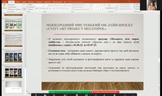 12 квітня 2023 р. в рамках проведення ІV частини міжнародного мистецького онлайн-проєкту «Unity art project Melitopol» «ПРИВІТ! МИ З УКРАЇНИ!» пройшов Міжнародний науково-методичний форум «ART ONLINE BRIDGE» на тему «Актуальність проблеми та наукові погляди щодо виховання особистості в системі суспільно-освітніх трансформацій та змін».