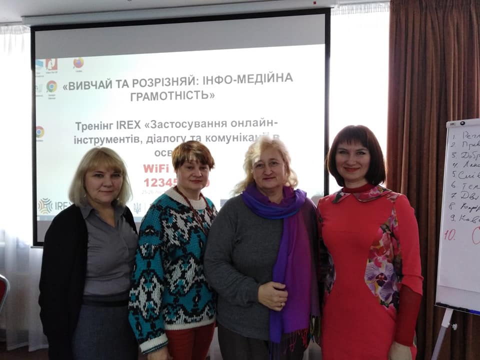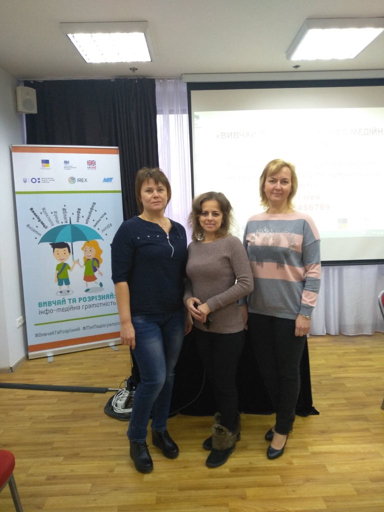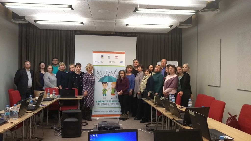 Дві робочі групи під керівництвом декана філологічного факультету доцента Т.В. Коноваленко (К.В. Авраменко, Н.В. Денисенко, О.В. Коваль, Н.Є. Мілько, Ю.А. Надольська, Л.І. Полякова, О.В. Юрченко) та доцента кафедри педагогіки і педагогічної майстерності С.С. Ізбаш (Я.В. Сопіна, І.В. Букреєва, Т.І. Таблер, Л.М. Котова, О.М. Антоненко, Т.А. Логвіна-Бик, А.С. Яковенко) відвідали дводенні тренінги з інфо-медійної грамотності у м. Києві та тему: «Застосування онлайн-інструментів діалогу та комунікації в освіті» та «Діалогові технології як складова освітнього процесу». Метою тренінгів було опанування технологією підвищення рівня медіаграмотності та підтвердження ролі вищої школи в інтеграції навичок критичного сприйняття інформації в освітній процес підготовки майбутніх учителів закладів вищої освіти. Завдяки участі у проекті наш університет отримав чудову нагоду оновити методичний інструментарій, модернізувати навчальні програми та модулі підготовки майбутніх вчителів шляхом забезпечення імплементації інфо-медійної грамотності та навичок критичного сприйняття інформації у професійну підготовку майбутніх учителів, які після закінчення університету впроваджуватимуть навички медіаграмотності у закладах загальної середньої освіти.