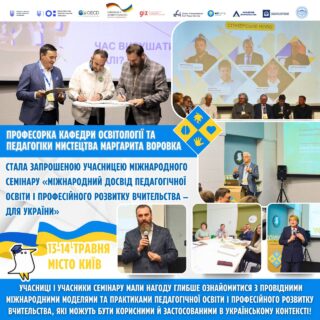 👩🏻‍🎓🇺🇦Маргарита Воровка, професорка кафедри освітології та педагогіки мистецтва Мелітопольського державного педагогічного університету імені Богдана Хмельницького, стала запрошеною учасницею міжнародного семінару 📚🚀«Міжнародний досвід педагогічної освіти і професійного розвитку вчительства — для України», що відбувся 13–14 травня 2025 року у м. Києві.