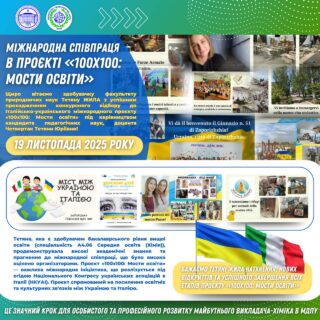 ⭐️🇪🇺 Проєкт «100х100: Мости освіти», який реалізується під егідою Національного Конгресу українських асоціацій в Італії, спрямований на зміцнення освітніх та культурних зв’язків між Україною та Італією, відкриває учасникам нові горизонти професійного та особистісного розвитку.