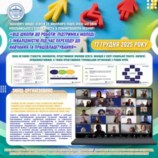 🌐👥 Захід об’єднав студентів, викладачів, представників закладів освіти, фахівців у сфері соціальної роботи, інклюзії та працевлаштування, а також представників громадських організацій з різних країн. Основною метою вебінару стало обговорення ефективних європейських підходів до підтримки молодих людей з інвалідністю у перехідний період від завершення шкільної освіти до продовження навчання або виходу на відкритий ринок праці.