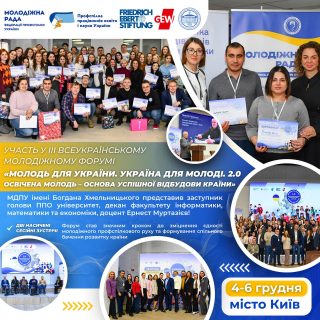 🏛️📚З 4 по 6 грудня 2024 року у Києві відбувся III Всеукраїнський молодіжний форум під гаслом: «Молодь для України. Україна для молоді. 2.0. Освічена молодь – основа успішної відбудови країни». Захід став ключовим майданчиком для обговорення ролі молоді у відновленні та розвитку держави в умовах сучасних викликів.