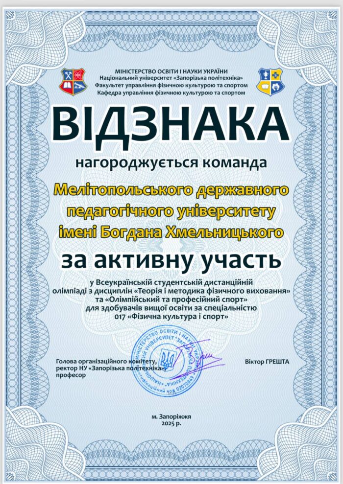 🏆🥳 Команда МДПУ імені Богдана Хмельницького також удостоєна відзнаки за активну участь у олімпіаді — ще одне підтвердження, що ми єдина родина, де кожен — творець перемог і зрушень!