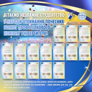 Грамотами Профспілкового комітету університету нагороджені активні, відповідальні та ініціативні здобувачі вищої освіти МДПУ імені Богдана Хмельницького:
