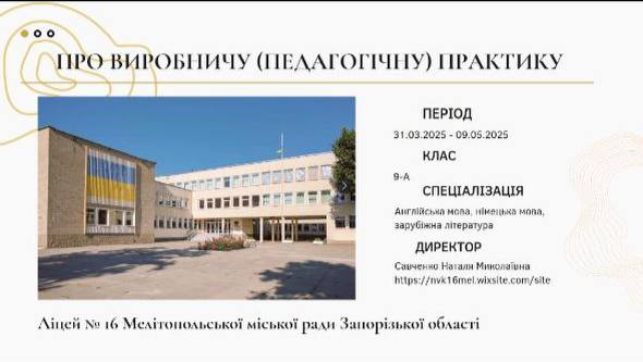 📆✒️Практика тривала з 31 березня по 9 травня 2025 року відповідно до навчального плану та наказу ректора університету. Базами її проходження стали заклади загальної середньої освіти та коледжі у Запорізькій, Дніпропетровській, Одеській, Харківській, Херсонській та Черкаській областях.