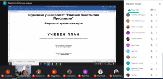 07 грудня 2020 р. на філологічному факультеті відбулася онлайн відкрита лекція Красимири Колевої, доктора наук, лектора болгарської мови, літератури та культури Шуменського університету «Єпископ Костянтин Преславський» (республіка Болгарія) «Филологические магистерские программы в Шуменском университете им. Константина Преславского» для студентів, які навчаються на першому (бакалаврському) та другому (магістерському) рівні за освітніми програмами: Середня освіта. Українська мова і література ; Філологія. Українська мова і література; Середня освіта. Мова і література (англійська, німецька); Філологія. Германські мови та літератури (переклад включно).