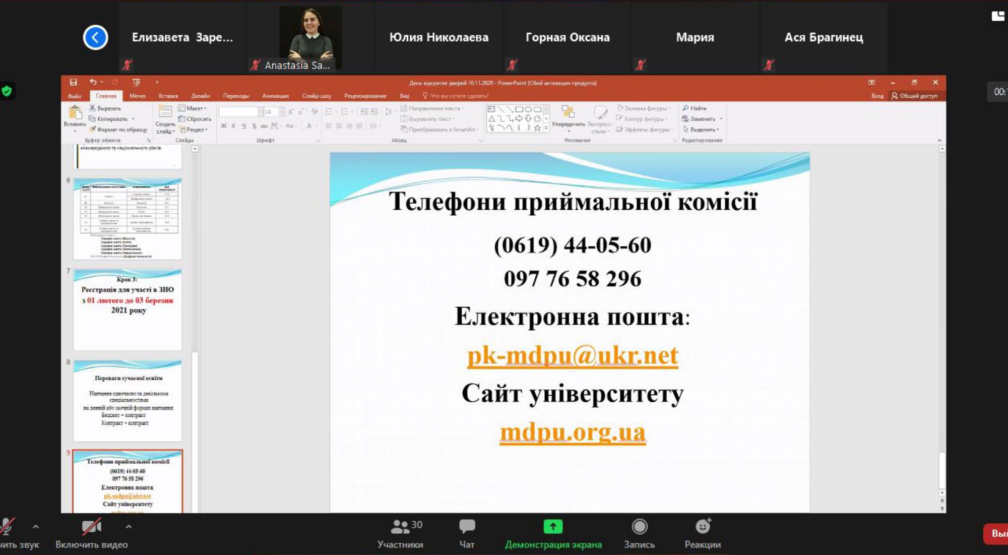 З особливостями прийому до університету у 2021 році абітурієнтів ознайомила відповідальний секретар приймальної комісії Світлана Дубяга, яка окреслила етапи вступної кампанії, специфіку зарахування вступників тощо. Світлана Миколаївна зазначила, що кожен охочий упродовж вступної кампанії зможе отримати вичерпну інформацію у приймальній комісії університету.