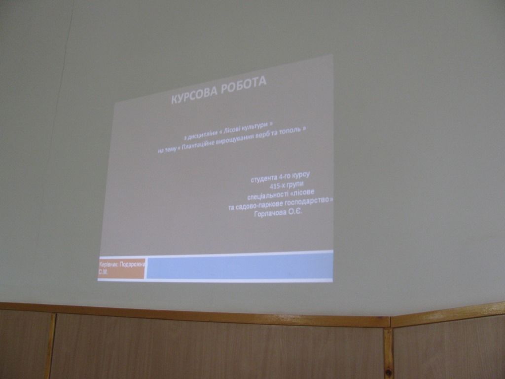 8 травня 2019 року на кафедрі ботаніки і садово-паркового господарства відбувся захист курсових робіт студентів із спеціальностей лісового і садово-паркового господарства з дисципліни «Лісові культури». Студенти успішно захистили свої роботи та відповіли на всі додаткові питання членів комісії.