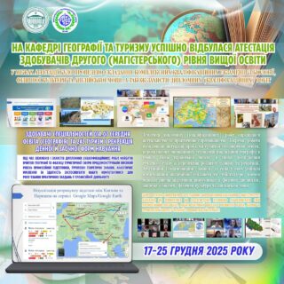 🏛💫 Під час екзаменів і захистів дипломних (кваліфікаційних) робіт майбутні вчителі географії та фахівці туристичної сфери продемонстрували високий рівень професійної підготовки, ґрунтовні теоретичні знання, аналітичне мислення та здатність застосовувати набуті компетентності для розв’язання практичних завдань у професійній діяльності.