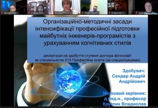 – здобувача Сендера Андрія Андрійовича, тема «Організаційно-методичні засади інтенсифікації професійної підготовки майбутніх інженерів-програмістів з урахуванням когнітивних стилів».