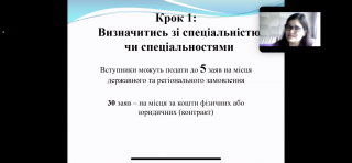 Потім про переваги освітньої діяльності та соціальні питання, що так хвилюють абітурієнтів (вартість та умови проживання у гуртожитку), розповів доцент Гузь Володимир Васильович. Наукову діяльність на спеціальності, та в університеті в цілому, презентувала старший викладач Чорна Вікторія Володимирівна.