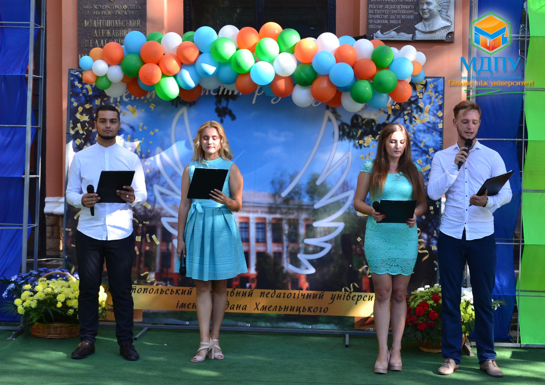 Свято першокурсника у Мелітопольському державному педагогічному університеті імені Богдана Хмельницького об’єднало разом першокурсників інституту і всіх факультетів. Організатори заходу подарували студентам чимало сюрпризів, теплих емоцій, які назавжди залишаться в пам’яті всіх учасників.