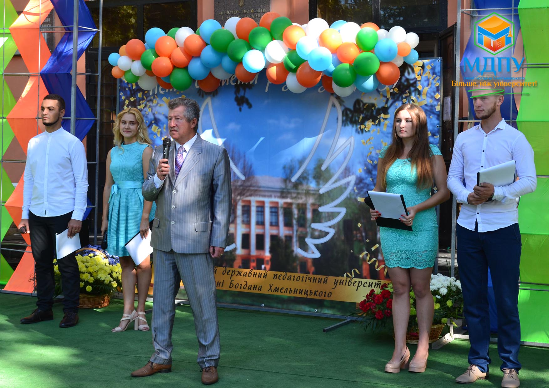 – Дорогі першокурсники! Щиро вітаю Вас з Днем знань! Також хочу привітати зі святом батьків, бабусь і дідусів, які радіють новому статусу вчорашніх школярів – сьогоднішніх студентів.