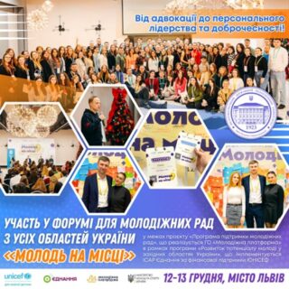 «Програма підтримки молодіжних рад», що реалізується ГО «Молодіжна платформа» в рамках програми «Розвиток потенціалу молоді у західних областях України», що імплементується ІСАР Єднання за фінансової підтримки ЮНІСЕФ!