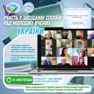 - Участь в засіданні координаційних зборів рад молодих учених та наукових товариств студентів, аспірантів, докторантів Запорізької області.