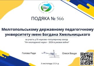 27-28 червня 2024 року в Мелітопольському державному педагогічному університеті імені Богдана Хмельницького відбулася ІІ Міжнародна науково-практична конференція “Євроінтеграційні орієнтири інноваційного наукового пошуку молоді України”