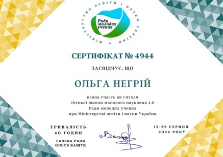 - Участь в інших заходах та конкурсах для молодих вчених.