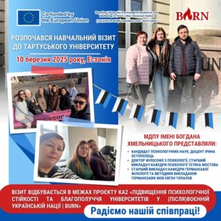Представник Ради молодих вчених МДПУ імені Богдана Хмельницького Євген Топалов бере участь в навчальному візиті до Тартуського Університету, Естонії в межах проєкту KA2 «Підвищення психологічної стійкості та благополуччя університетів у (після)воєнній українській нації | BURN»