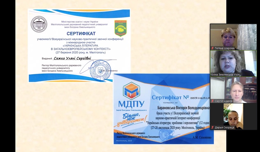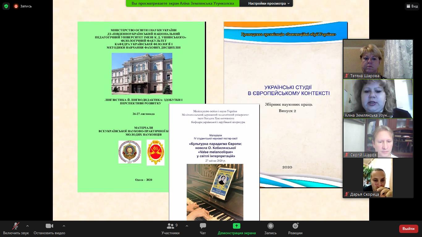 Керівник гуртка доцент Землянська А.В. ознайомила нових членів гуртка з досягненнями за попередні роки, відзвітувала про результати діяльності гуртка за 2020 рік, нагадала про найбільші досягнення та найпомітніші наукові події: ІІ місце на Всеукраїнському конкурсі студентських наукових робіт з української мови і літератури (студентки Суховій Л., Коваленко А., керівник – ст. викл. Огульчанська О.А.); перемога у Конкурсі есе учнівської та студентської молоді «Мій Шевченко» (Скориця Д., Касаджи С., Сириденко О., Мельнікова А., Костішак І. та ін., керівники – доценти Шарова Т.М., Шаров С.В., Землянська А.В., асистент Мажара Н.С.); проведення IV студентської наукової постер-сесії «Культурна парадигма Європи» та ін.