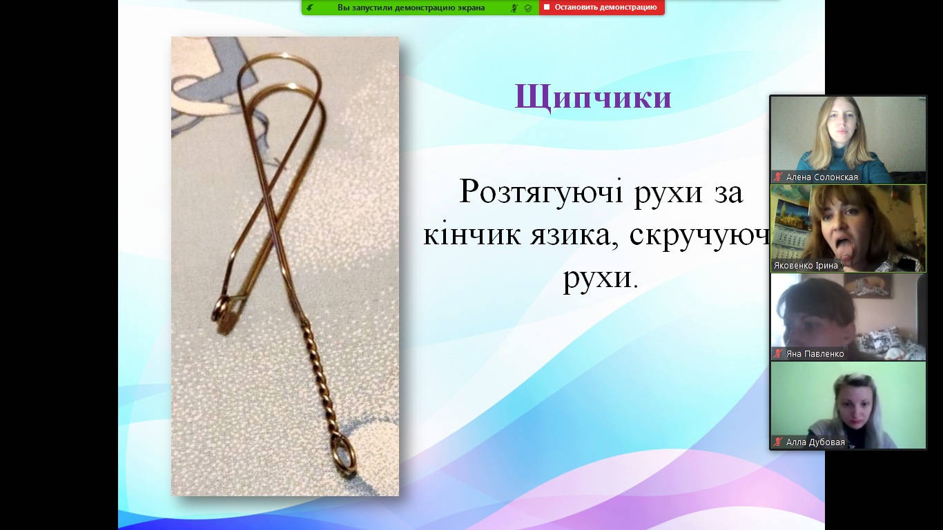 Учасникам було продемонстровано техніку проведення ручного логопедичного масажу (обличчя, артикуляційного апарату, коміркової зони) та зондового масажу за допомогою спеціальних інструментів – логопедичних зондів. Також майбутні фахівці дізналися, які підручні засоби можна використовувати для логопедичного масажу.