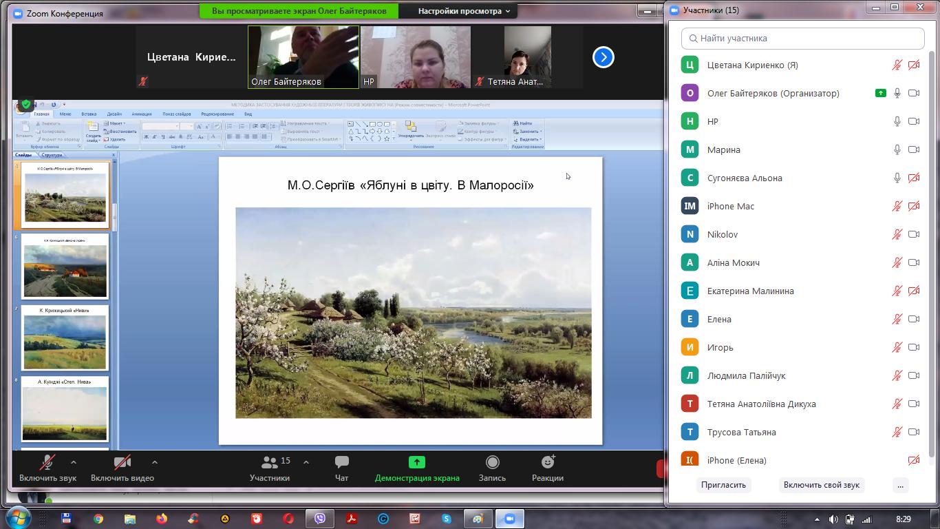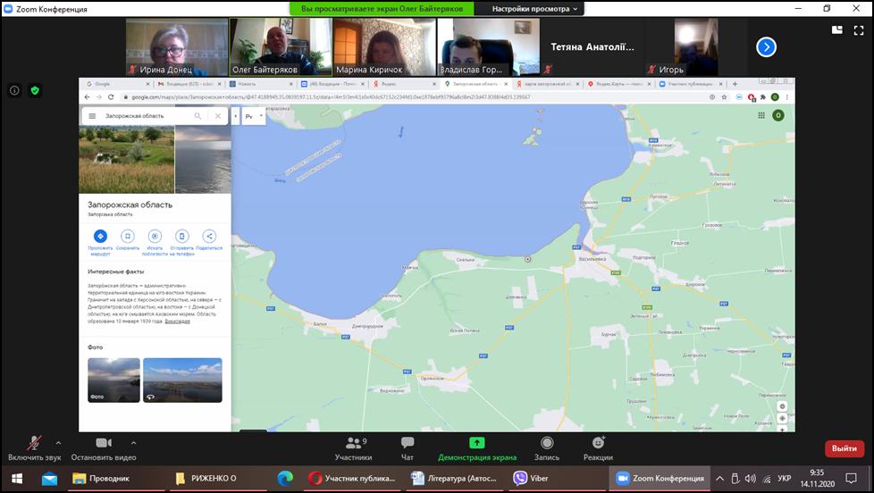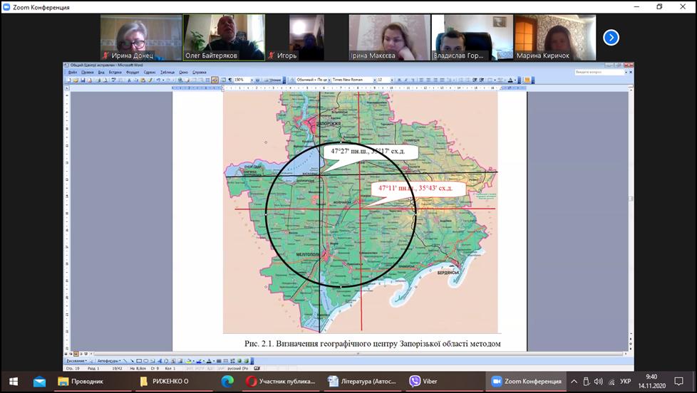 Доцент О.З.Байтеряков детально ознайомив слухачів з питаннями формування культурологічної компетентності учнів шляхом застосування творів живопису та художньої літератури в географічній освіті, формуванням картографічних понять, умінь і навичок на уроках географії за допомогою визначення географічних центрів території різними методами.