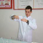 Асистент Олександр Володимирович Яковійчук продемонстрував досліди з впливу різних факторів на структуру білка.