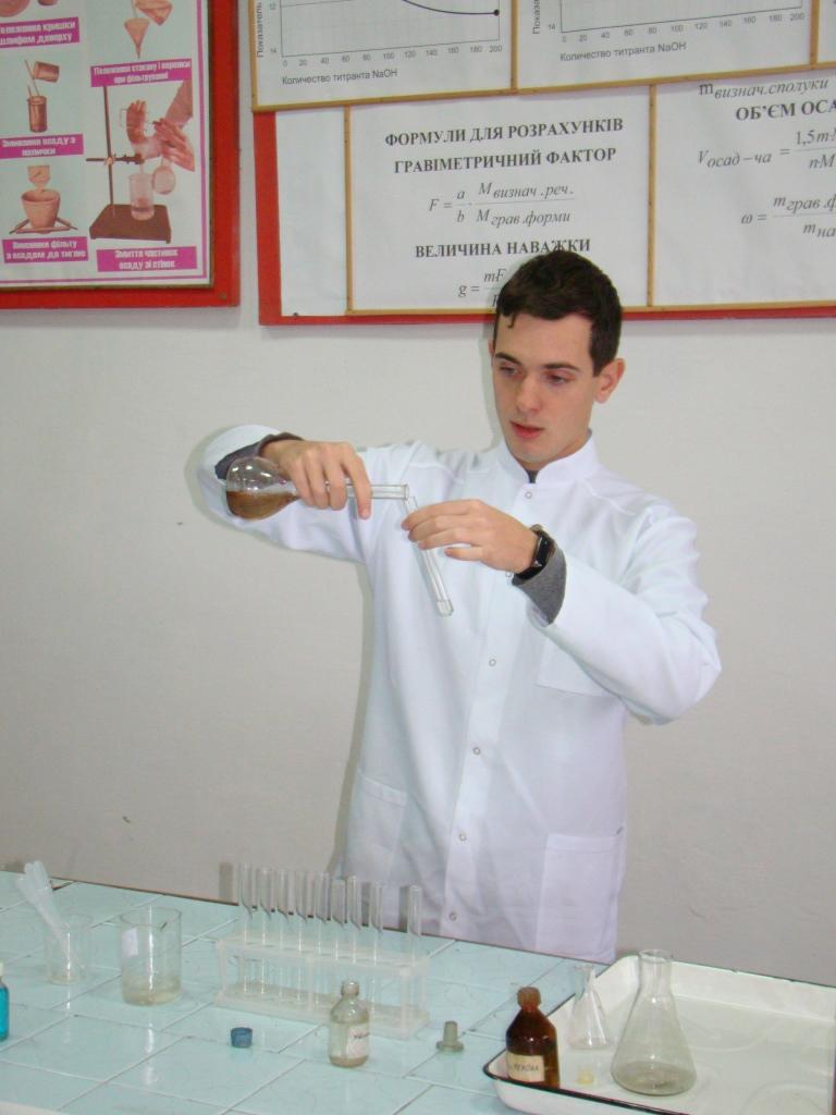 Асистент Олександр Володимирович Яковійчук продемонстрував досліди з впливу різних факторів на структуру білка.