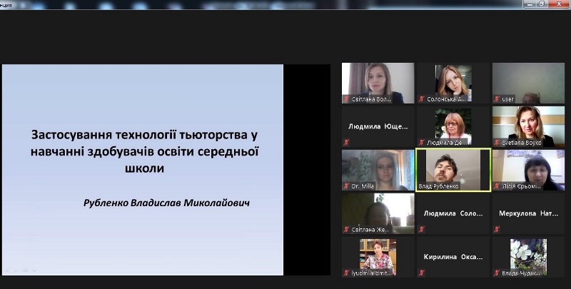 В обговоренні нагальних питань тьюторського супроводу в закладах вищої та загальної середньої освіти виступили: Снігурова І. І. (співзасновниця Освітньо-культурного проекту «Мовний клуб «ДІАЛОГ», старший викладач кафедри української мови, Національний технічний університет «Харківський політехнічний інститут»); Ющенко Л. О. (доцент кафедри дошкільної освіти та професійного розвитку педагогів, КНЗ «Черкаський обласний інститут післядипломної освіти педагогічних працівників Черкаської обласної ради»); Єрьоміна Л. Є. (доцент кафедри дошкільної освіти і соціальної роботи, Мелітопольський державний педагогічний університет імені Богдана Хмельницького); Подпльота С. В. (доктор філософії у галузі педагогіки, асистент кафедри іноземних мов, Мелітопольський державний педагогічний університет імені Богдана Хмельницького); Добрянська О. М. (завідувач навчально-методичної лабораторії природничо-математичних дисциплін, КЗВО «Дніпровська академія неперервної освіти»); Рубленко В. М. (вчитель історії, Комунальний заклад «Маріупольська загальноосвітня школа І-ІІІ ступенів № 19 Маріупольської міської ради Донецької області»); Чудакова В. В. (здобувач вищої освіти освітньо-професійної програми «Соціальна робота. Соціальна педагогіка», Мелітопольський державний педагогічний університет імені Богдана Хмельницького); Альохін М. М. (аспірант лабораторії соціальної педагогіки та соціальної роботи, Інститут проблем виховання НАПН України).