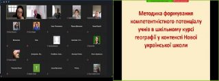 Доцент кафедри туризму, соціально-економічної географії та краєзнавства О.З. Байтеряков ознайомив учасників з питаннями формування культурологічної компетентності учнів шляхом застосування творів живопису та художньої літератури, поштових марок, грошових знаків світу в географічній освіті, формуванням картографічних понять, умінь і навичок на уроках географії за допомогою визначення географічних центрів території різними методами.
