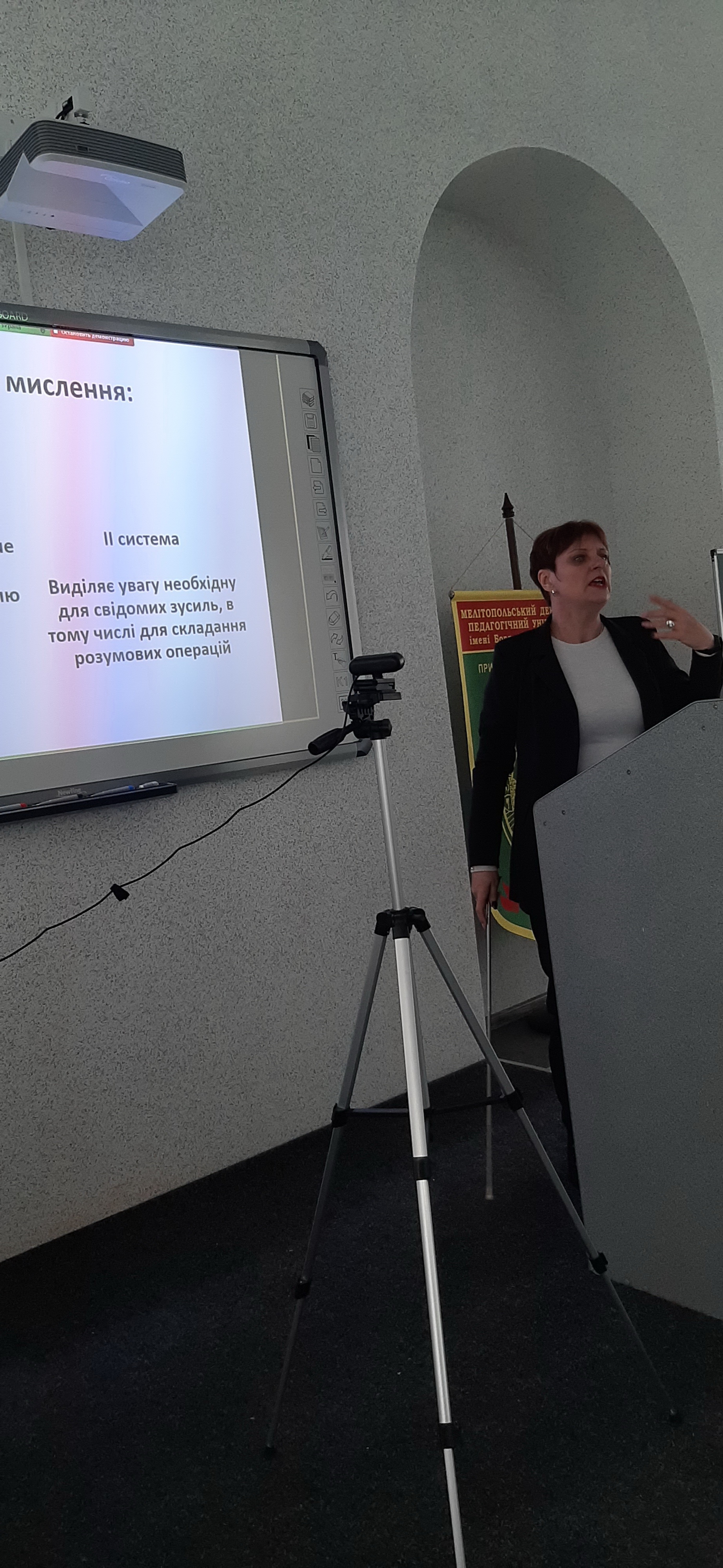 Вчитель географії мелітопольського ліцею № 19 І.В. Голуб під час доповіді зосередила увагу на використання технології критичного мислення на уроках географії з метою підвищення вмотивованості учнів до навчання.