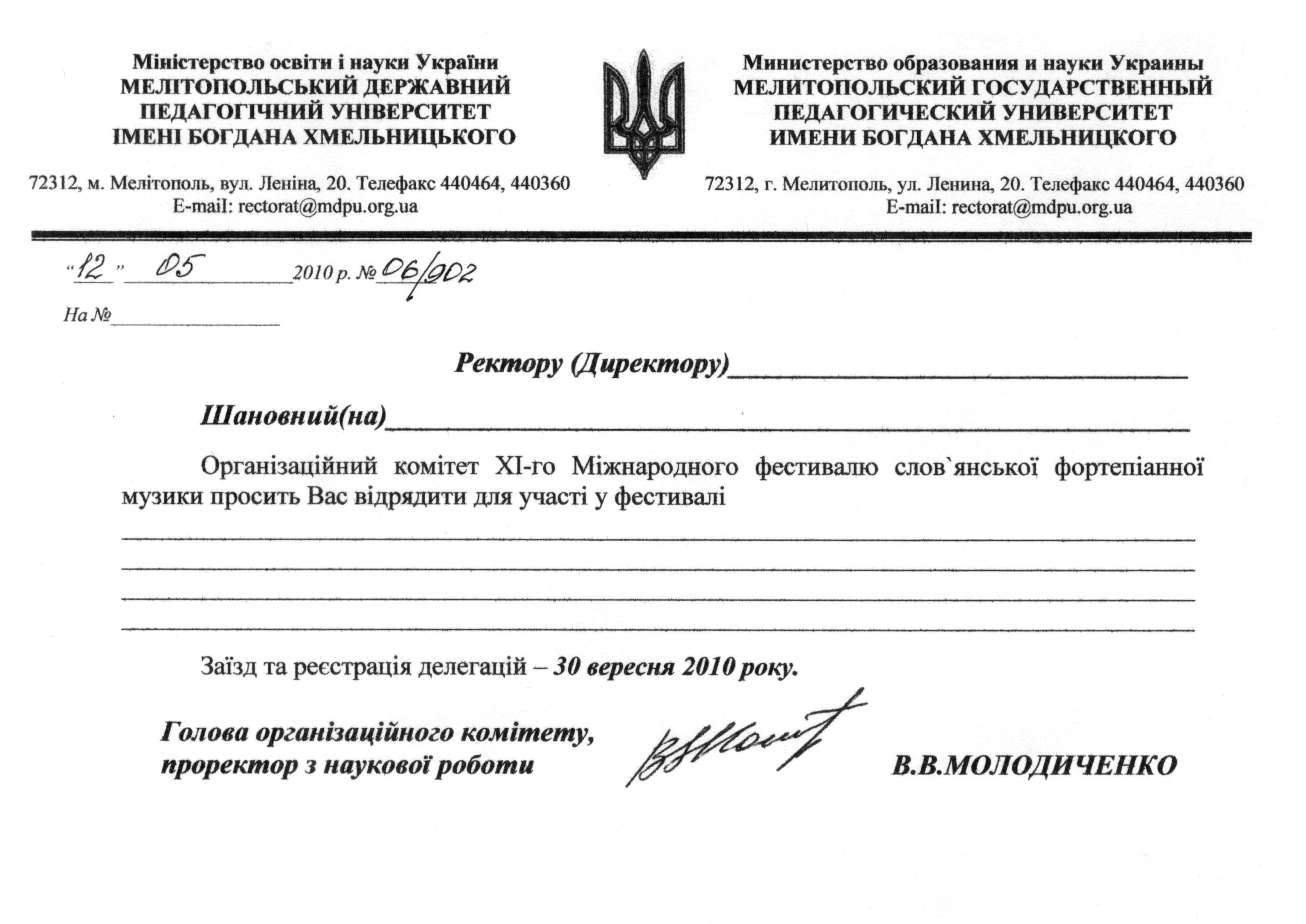 1-4 жовтня 2010 року у Мелітопольському державному педагогічному університеті імені Богдана Хмельницького відбудеться ХI МІЖНАРОДНИЙ ФЕСТИВАЛЬ СЛОВ`ЯНСЬКОЇ ФОРТЕПІАННОЇ МУЗИКИ.