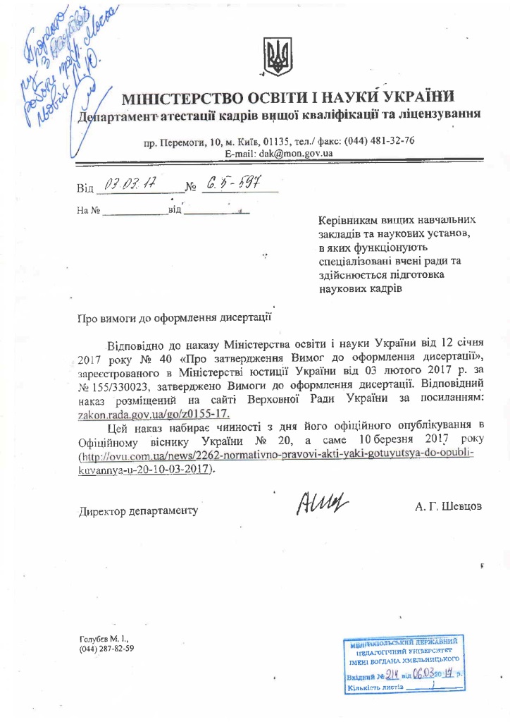 ЗАТВЕРДЖЕНО НОВІ ВИМОГИ ДО ОФОРМЛЕННЯ ДИСЕРТАЦІЙ